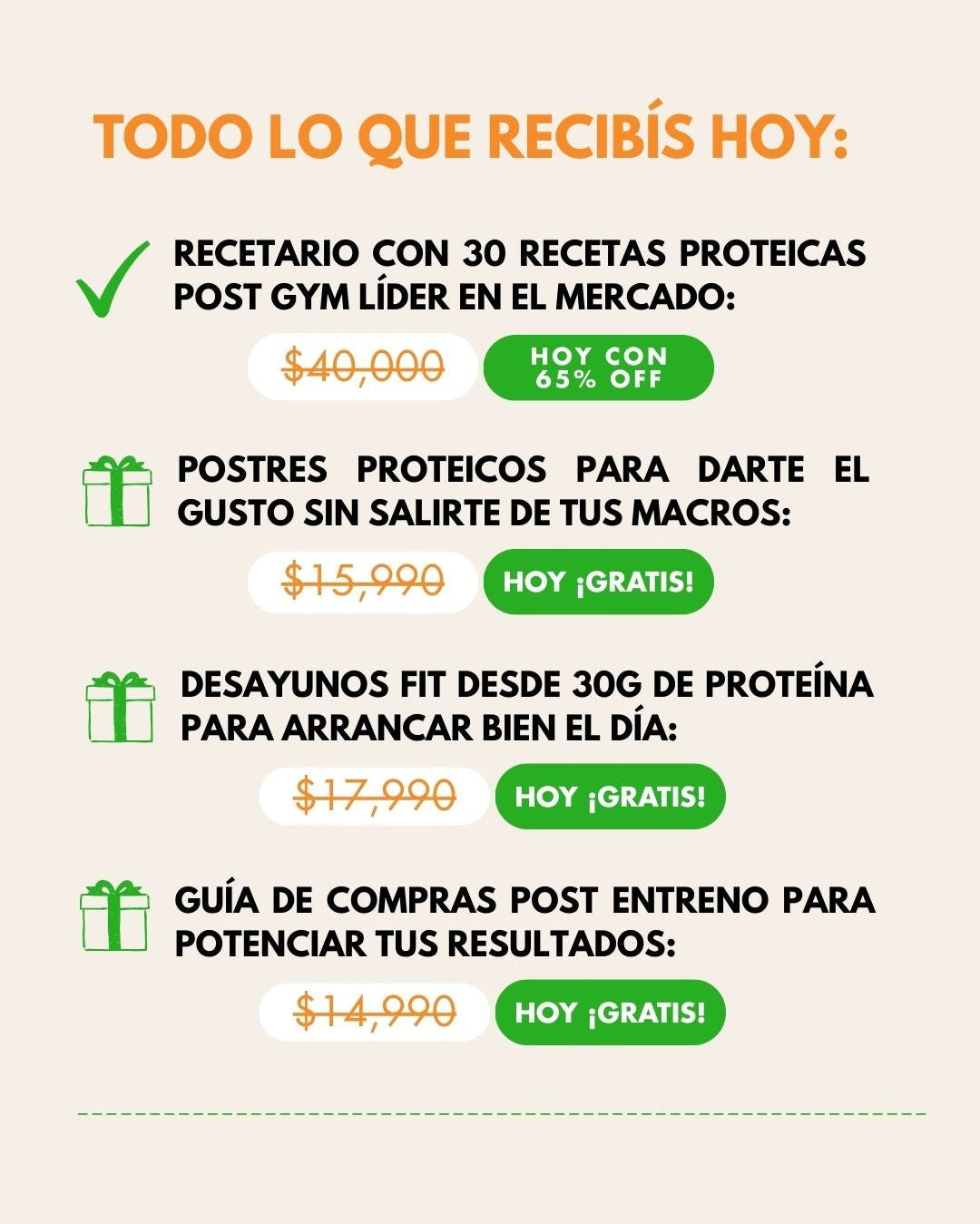 - 🛒 Guía de Compras Inteligente Post-Entreno: para organizar tus compras y simplificar tu alimentación.