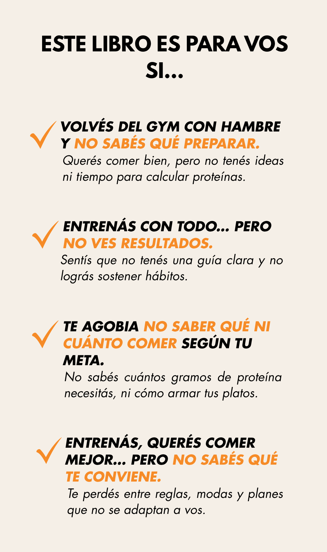 Por eso, tenés 7 días completos para leerlo, probar las recetas y empezar a sentir lo fácil que puede ser comer rico y proteico después de entrenar.
