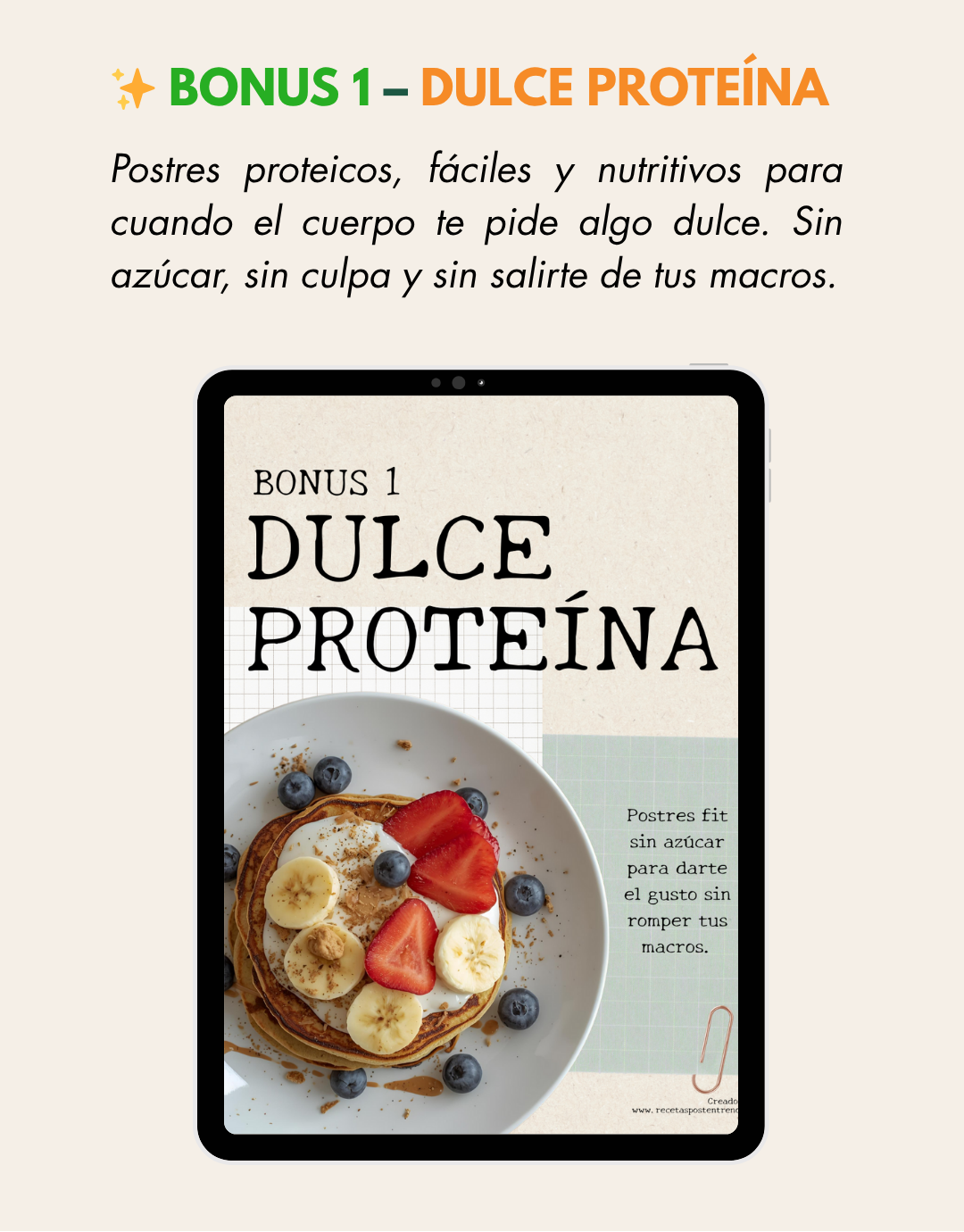 No. Este recetario es solo una guía práctica de ideas proteicas. Los resultados dependen de tu alimentación completa y tu entrenamiento. 📌