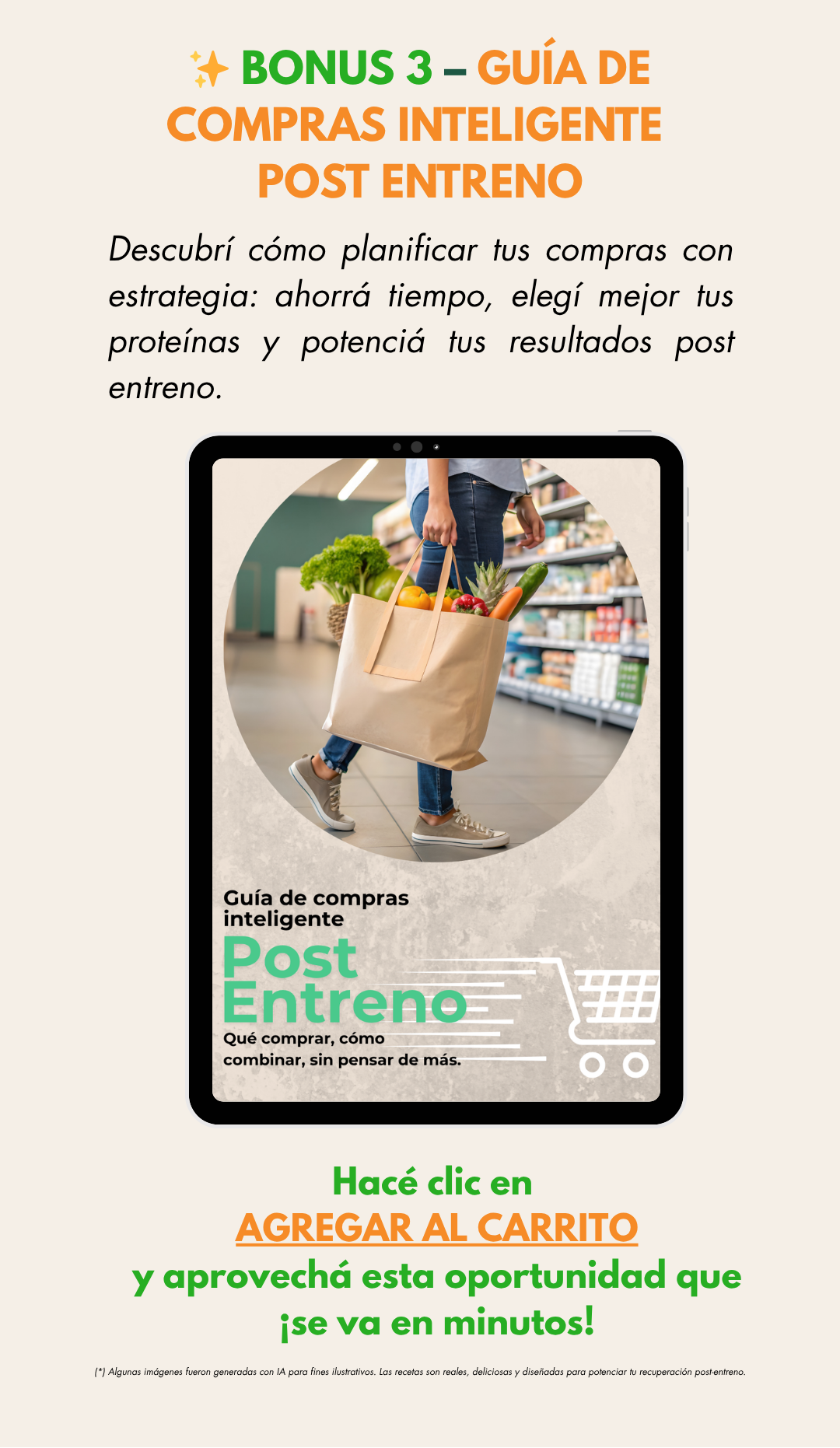 🛒 Guía de Compras Inteligente Post-Entreno – planificá y calculá tus compras con inteligencia para preparar tus recetas del Recetario Post Gym y optimizar resultados.